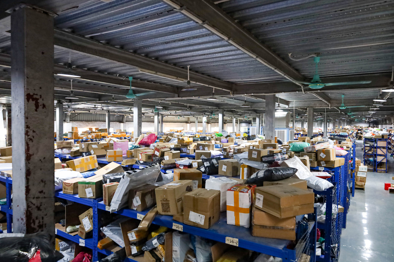 Tens of thousands of small parcels come in and out of the warehouse every day, and goods purchased online can be stored for 180 days free of charge